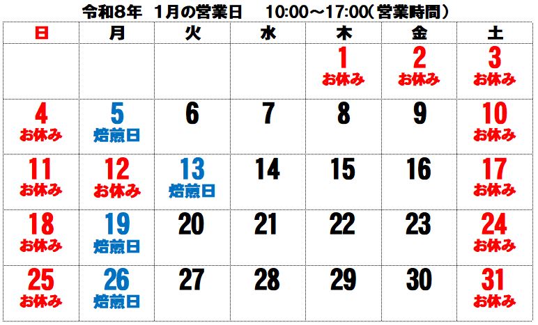 月曜日は焙煎日のため、通常の店頭販売はお休みです。